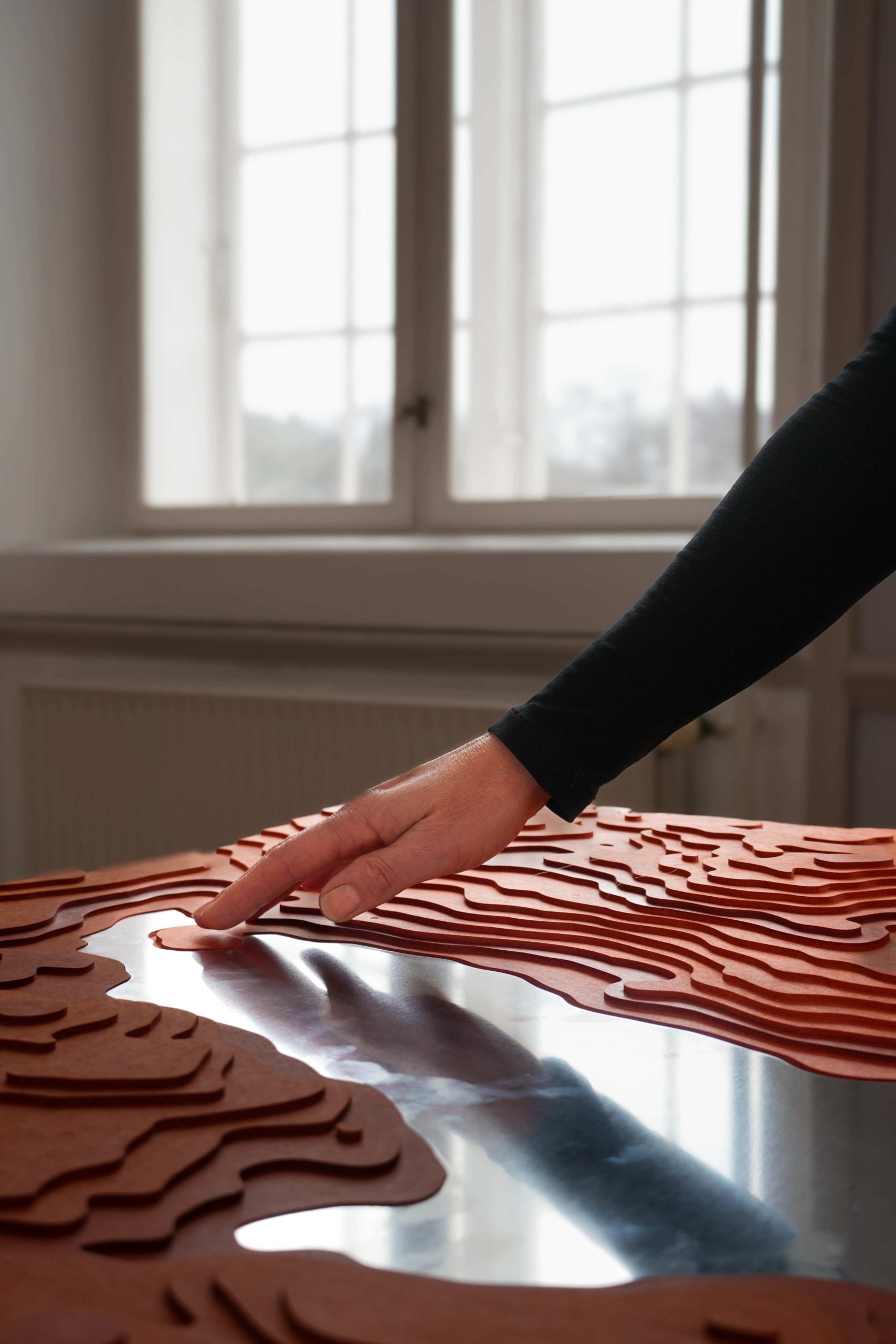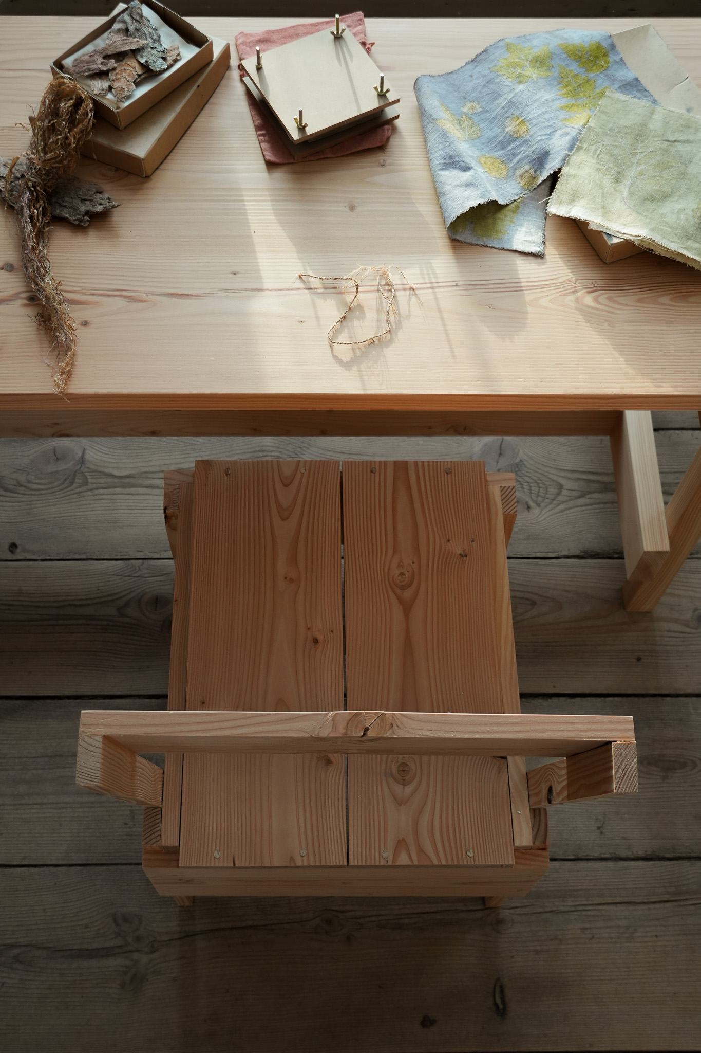 Udstillingen er skabt af materialer, som er indsamlet lokalt i Nordsjælland: Træet som møblerne er lavet af, stammer fra Gribskov, og i et særligt lydværk høres fuglelyde optaget i Esrum.